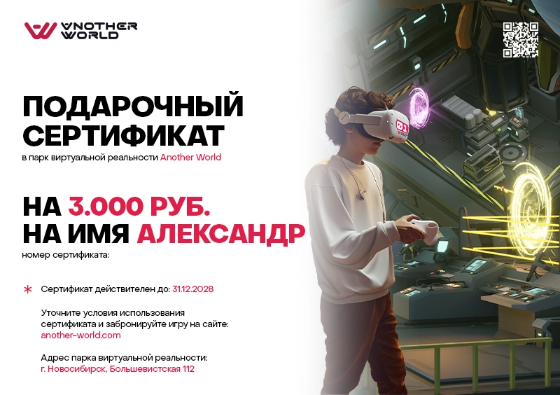 Подарочный сертификат в виртуальную реальность
